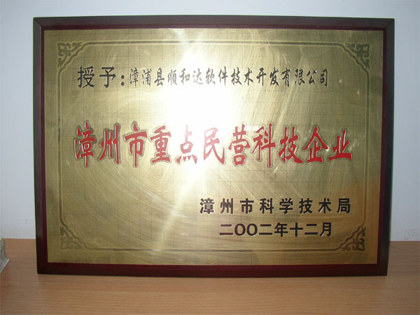 2002年,順和達(dá)被授予“漳州市重點民營科技企業(yè)”