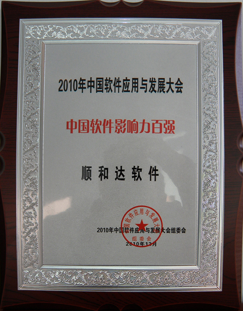2010年,順和達(dá)獲得中國軟件協(xié)會“中國軟件影響力百強”獎項