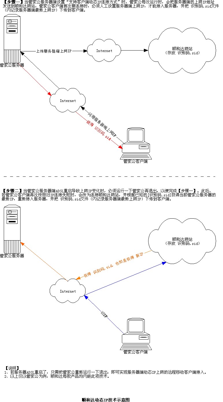 ·自動(dòng)IP:對(duì)于動(dòng)態(tài)IP上網(wǎng)的服務(wù)器端,無(wú)需任何工具或設(shè)置,即能相對(duì)固定地解析遠(yuǎn)程或移動(dòng)客戶端成功接入。一些品牌,則需用戶另外購(gòu)買一套幾百至幾千元的動(dòng)態(tài)IP固化解析軟件,或者,用戶需要每月向電信網(wǎng)絡(luò)供應(yīng)商繳納200-300元固定IP月租費(fèi)開支。 (技術(shù)示意圖)